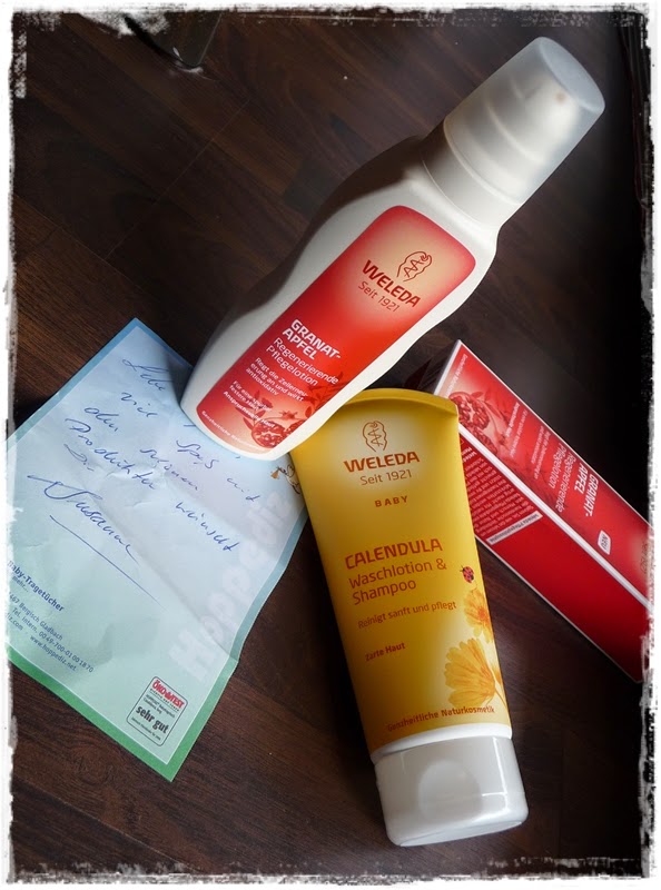 Zuerst war da die Verlosung von Susanne von Geborgen Wachsen, bei der sie ihren LeserInnen dankt. Ich habe ein tolles Set von Weleda gewonnen, das Shampoo kennen wir schon, die Creme ist eine tolle Neuentdeckung für mich und riecht sehr angenehm und so schön natürlich.